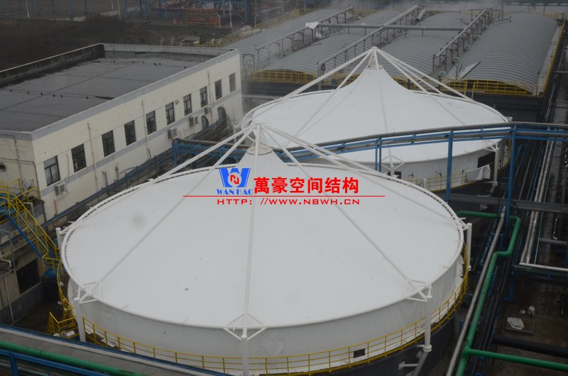格爾木工業園昆侖工業區工業污水廠污水池膜結構工程位于海西蒙古族藏族自治州格爾木市,此項目是國內首個ETFE膜結構污水池加蓋工程。 該工程主要建設格爾木工業園昆侖工業區工業污水處理廠首期2.5萬立方米/天工程二沉池、水解酸化池和預沉池池體保溫膜結構安裝。項目用鋼量230噸,膜結構展開面積5000平米。